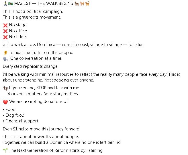 Dominica is ready for change. Our people are ready to move forward, together. For too long, politics has been about division, empty promises, and the same old faces playing the same old games. It is time to rewrite that story. It is time to put people over politics, solutions over slogans, and hope over fear.