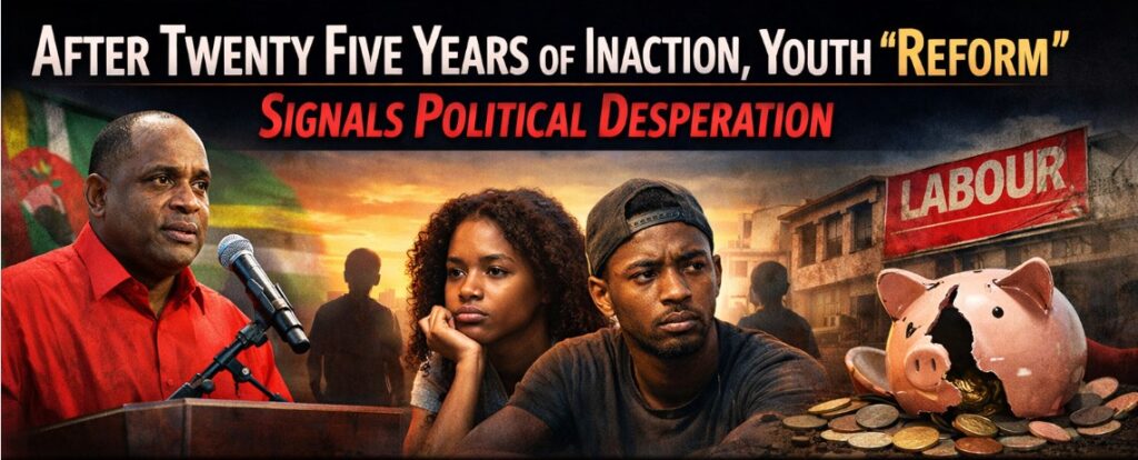 Restructuring an institution at this late stage does not undo years of neglect. Announcements do not replace outcomes. Rebranding does not substitute for genuine policy, accountability, or results. The desperation is showing, and the youth of Dominica are more perceptive than this Roosevelt Skerritt assumes. They are not looking for last-minute promises. They are looking for leadership that has proven, over time, that it truly cares, which is the Dominica Reform Party.