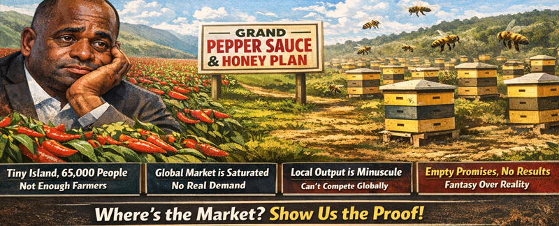 So yes, if your goal is simply to stock local supermarkets with peppers and honey, that is entirely achievable, but you do not need Roosevelt Skerrit to do that. The idea that this could drive real national economic growth, create meaningful employment, or put Dominica on the global stage? That is pure fantasy, just like Roosevelt Skerrit’s marijuana dream that is now gathering dust on the back burner for years.