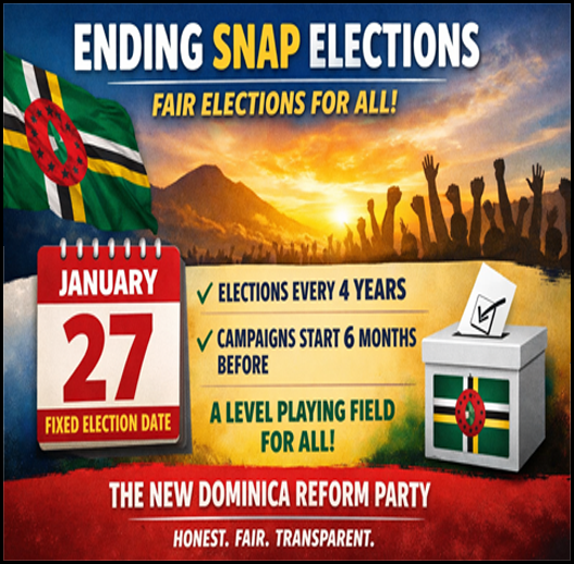 - The NEW Dominica Refrom Party (DRP) is the only party offering real election reform, even if it risks our own power.