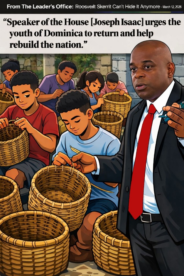 Now, Roosevelt Skerrit’s own party, Speaker of the House, a former member of the United Workers Party, stood in public, quoting Bob Marley and telling our youth to return, saying Dominica offers “numerous opportunities” and even comparing their future here to making baskets. Baskets? That’s Joseph Isaac’s grand vision that he and his Dominica Labour Party have for young Dominicans.