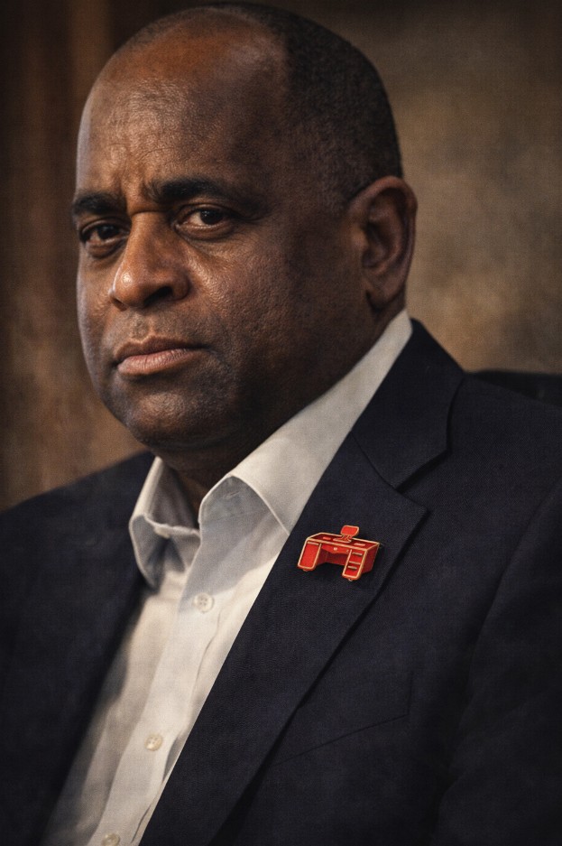 From The Leader’s Office: The Desk That Built Nothing After 20+ years in power and Dominica is still waiting for something to move… besides the papers on Roosevelt Skerrit’s oversized desk!